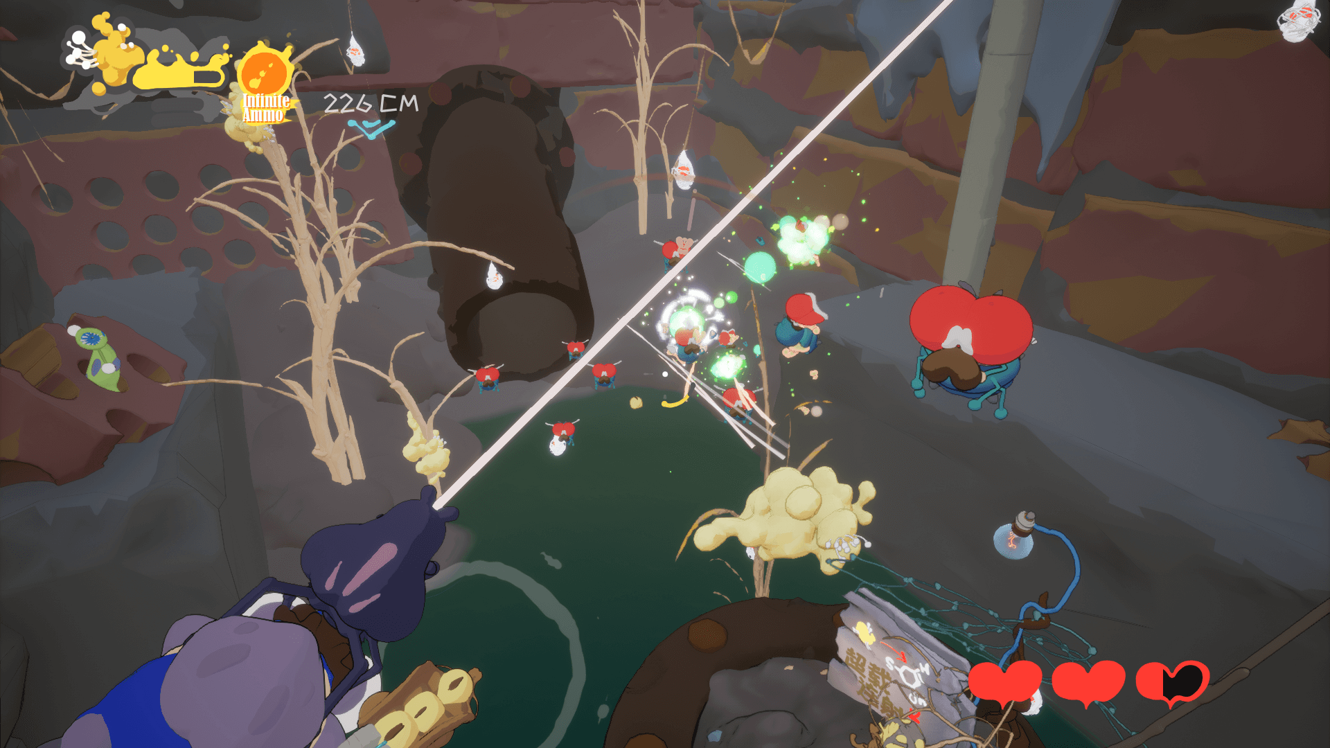 Enhance your arsenal to combat escalating threats! Keep an eye out for those aspergillus flavus – destroying them will charge your weapons.